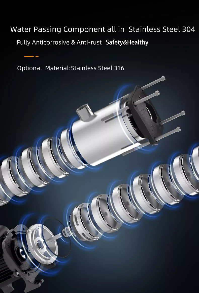 రైస్ఫుల్ రేటెడ్ ఫ్లో క్యాప్కాసిటీ 16m³/h స్మార్ట్ ఇన్వర్టర్ క్షితిజ సమాంతర స్టెయిన్లెస్ స్టీల్ మల్టీస్టేజ్ సెంట్రిఫ్యూగల్ పంప్