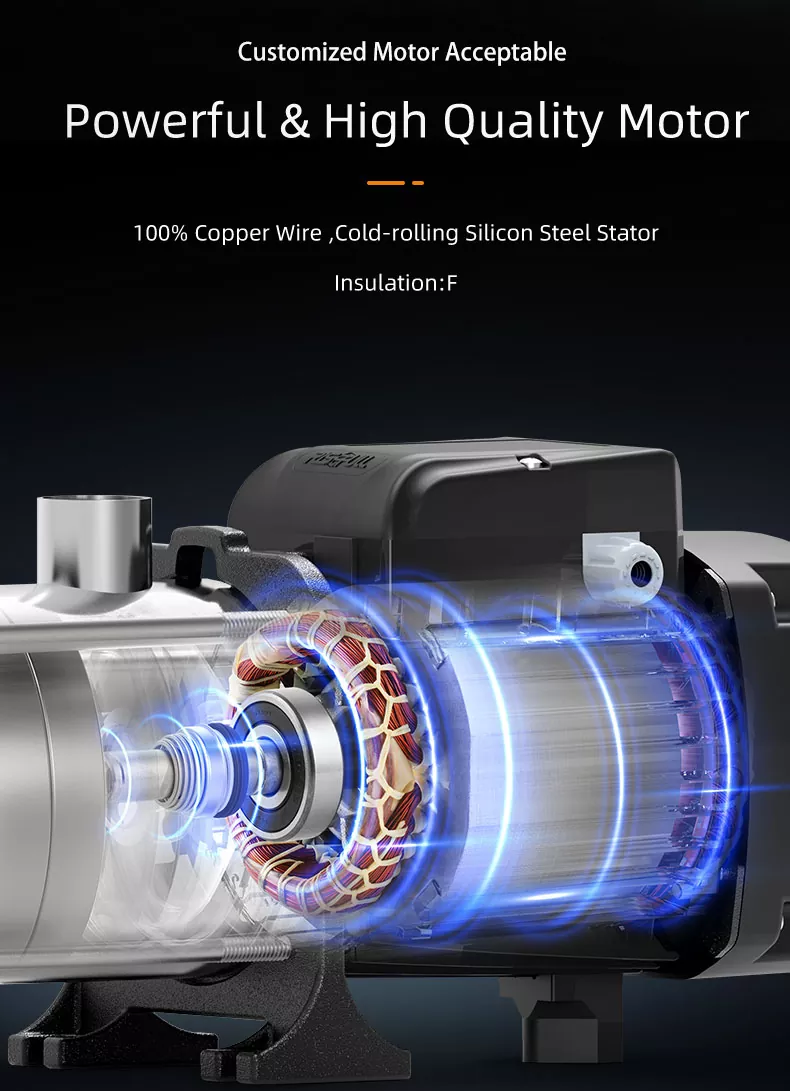 బహుముఖ అనువర్తనాలు: నివాస నీటి వ్యవస్థల నుండి వ్యవసాయ నీటిపారుదల మరియు పారిశ్రామిక ప్రక్రియల వరకు, ఈ పంపు ఇవన్నీ నిర్వహించడానికి బహుముఖంగా ఉంటుంది. దీని అధిక-పీడన ఉత్పత్తి వివిధ సెట్టింగ్లకు అనుకూలంగా ఉంటుంది, ఇది మీ పంపింగ్ అవసరాలకు నమ్మదగిన పరిష్కారాన్ని అందిస్తుంది.