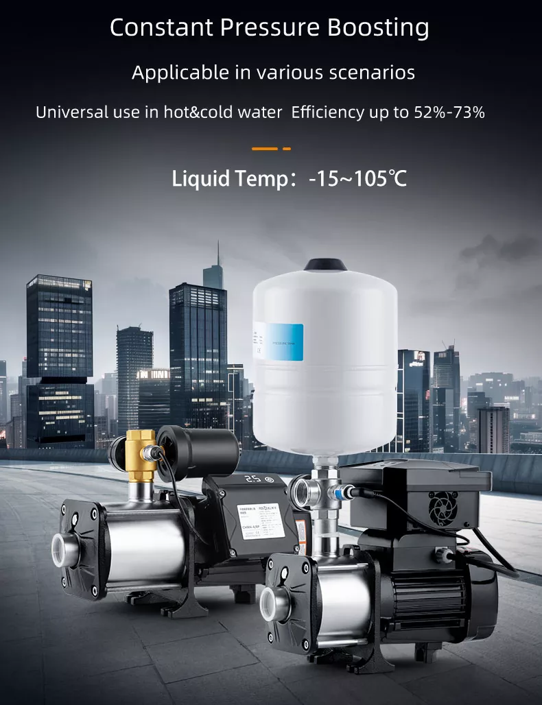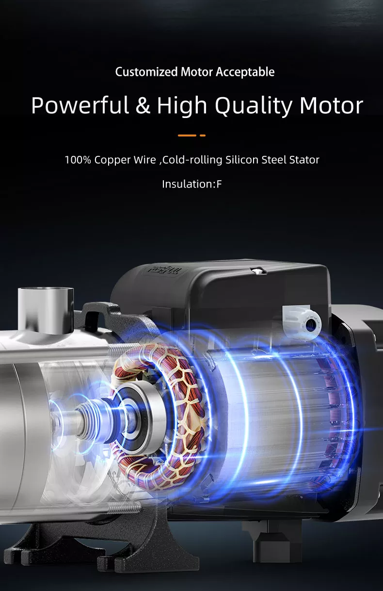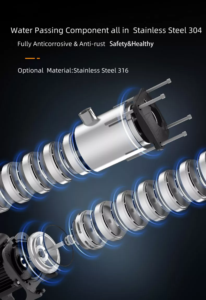 రైస్ఫుల్ రేటెడ్ ఫ్లో క్యాప్కాసిటీ 8m³/h స్మార్ట్ ఇన్వర్టర్ క్షితిజ సమాంతర స్టెయిన్లెస్ స్టీల్ మల్టీస్టేజ్ సెంట్రిఫ్యూగల్ పంప్